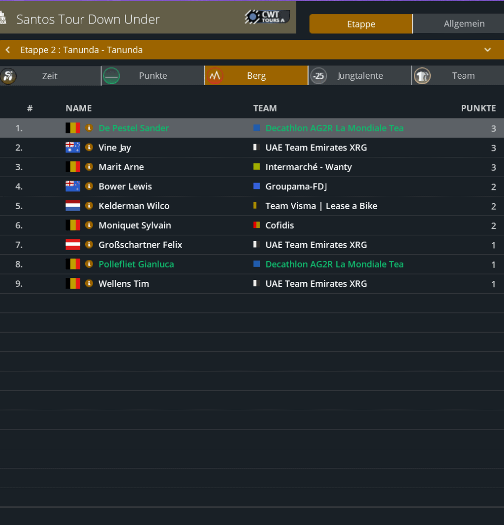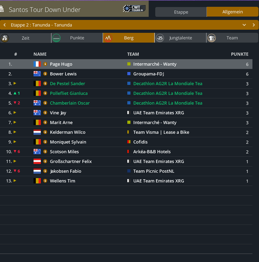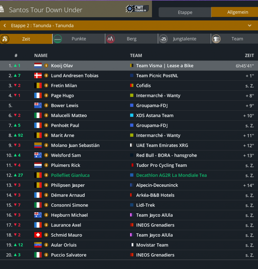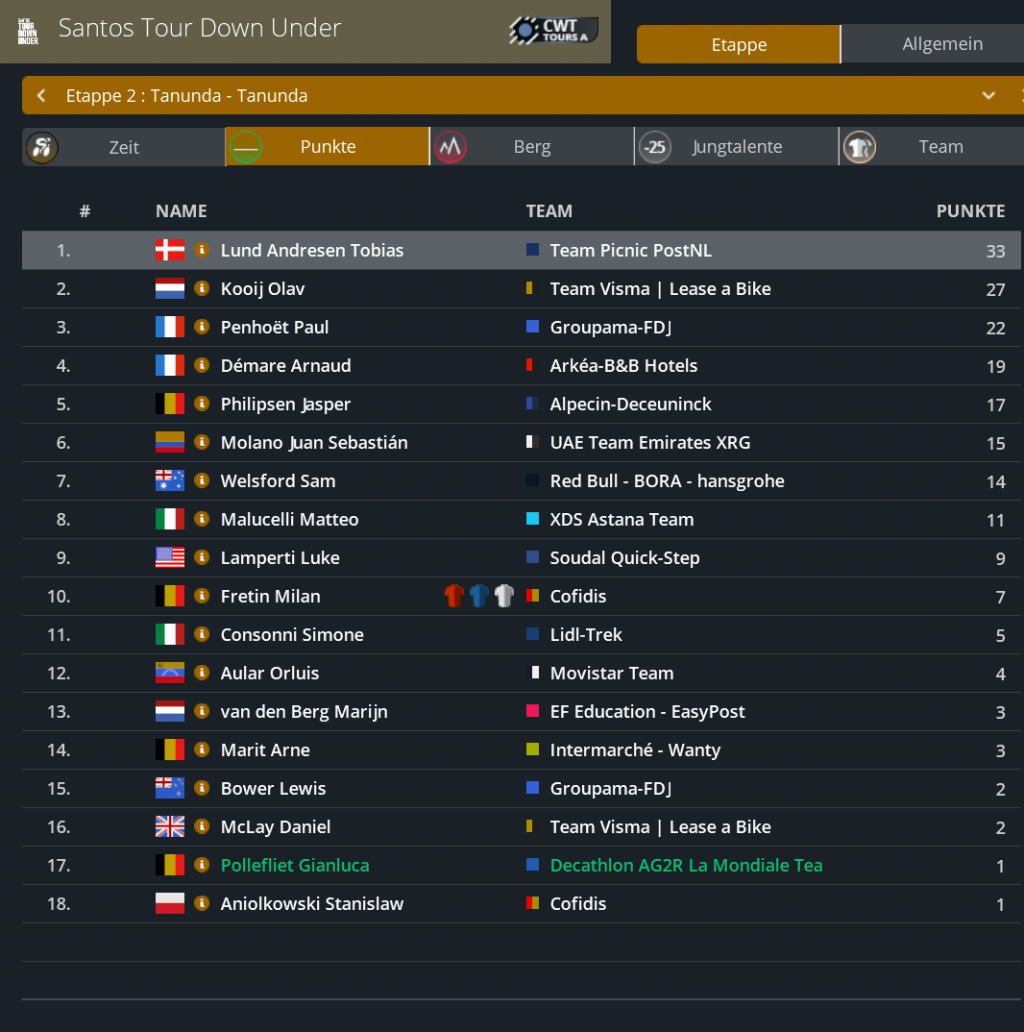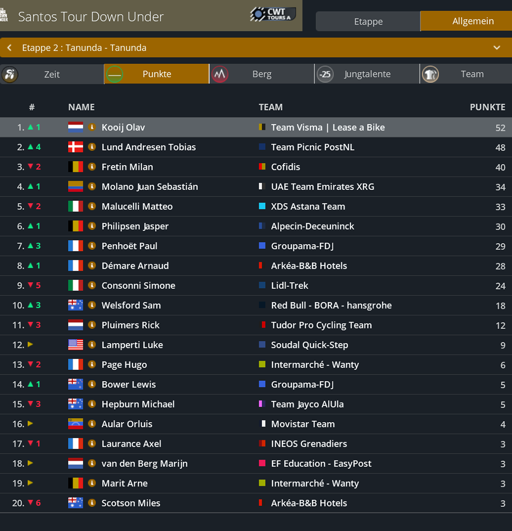 Punktwertung nach der 2. Etappe