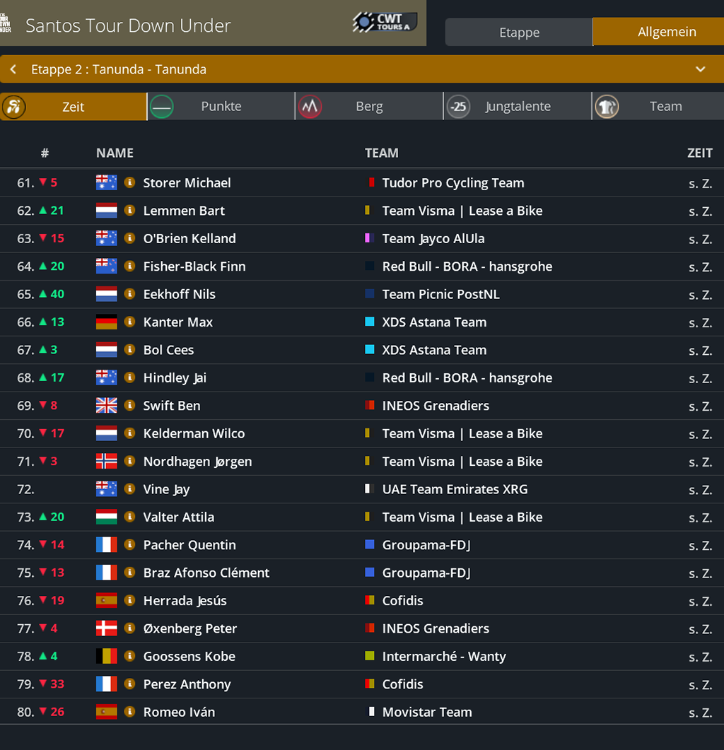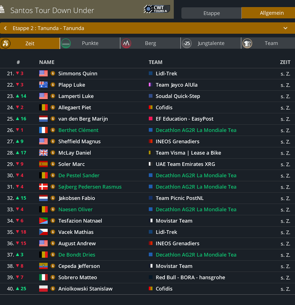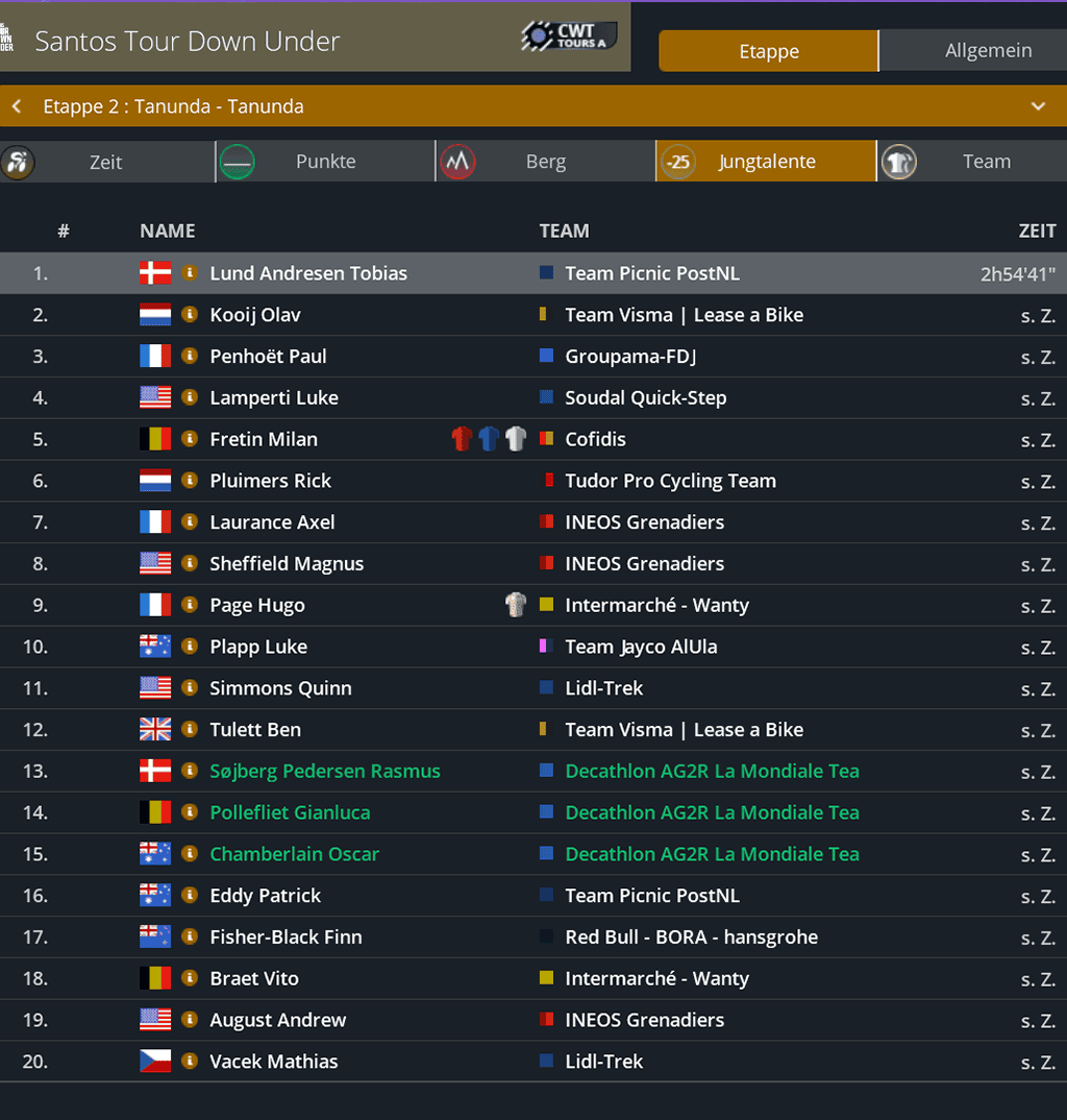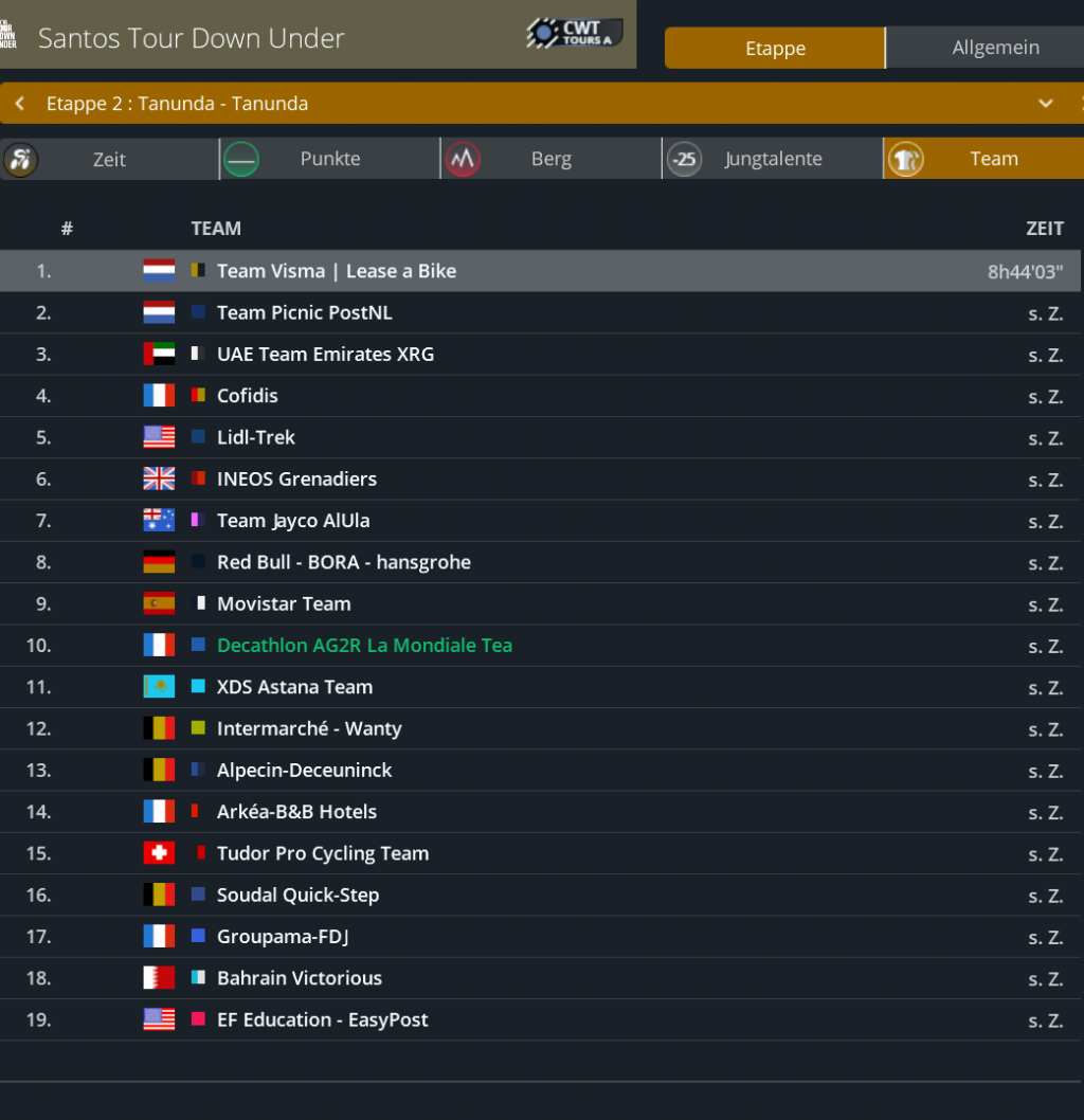 Punktwertung nach der 2. Etappe
