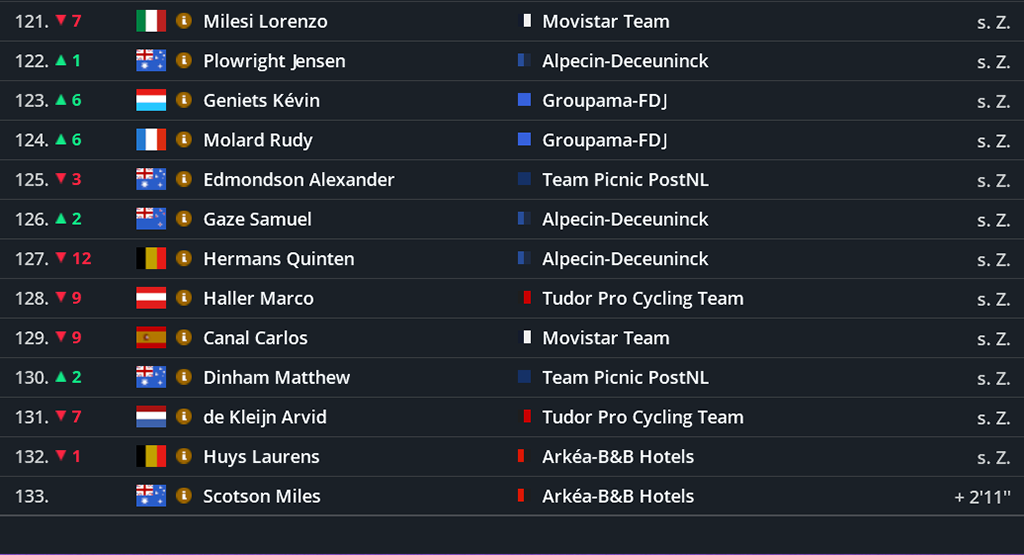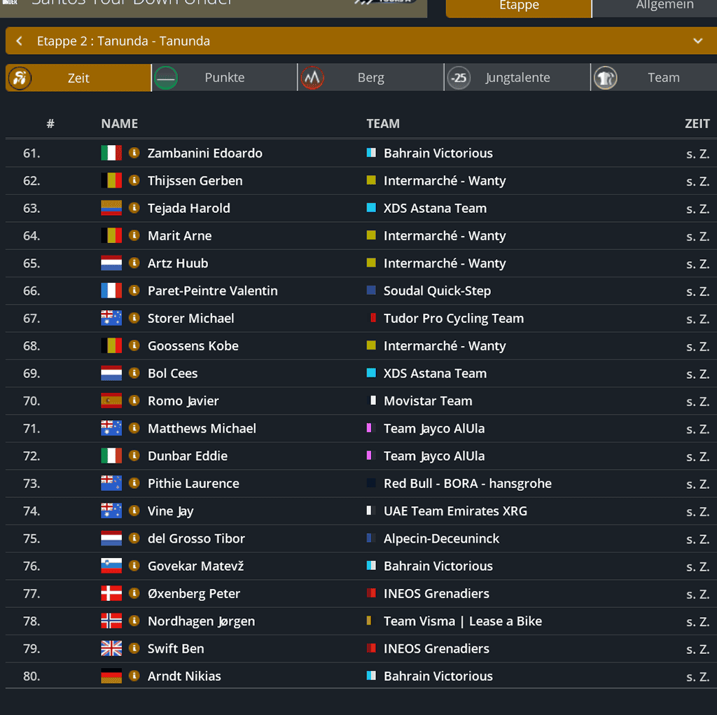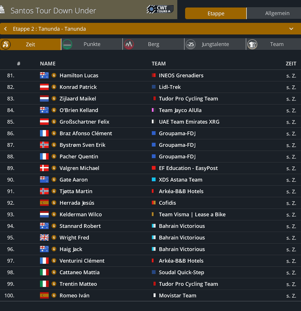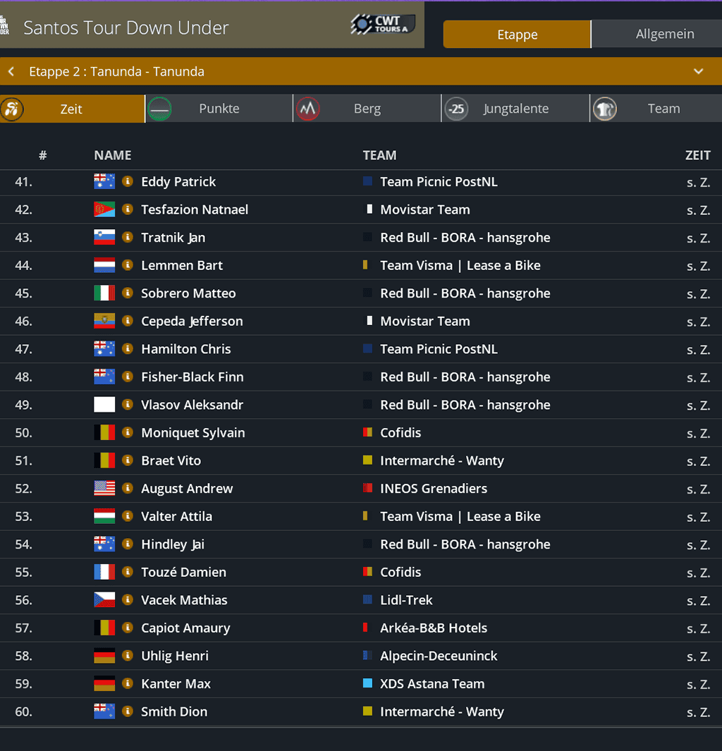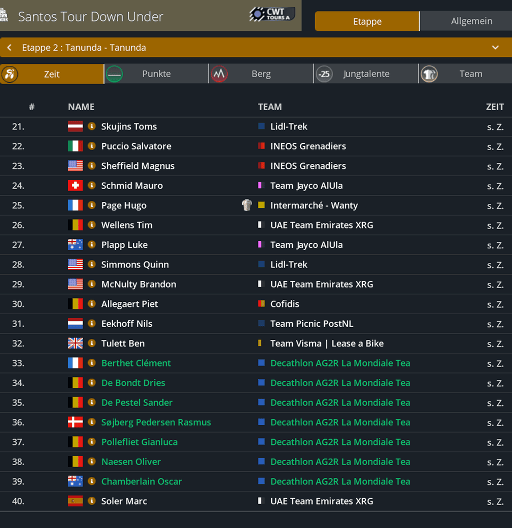 Punktwertung nach der 2. Etappe