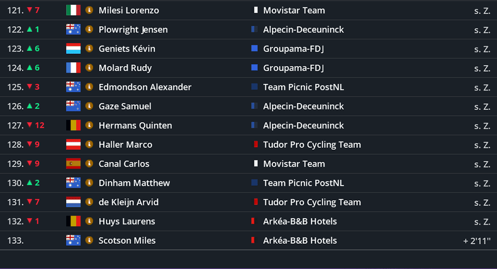 Gesamtwertung nach der 2. Etappe
